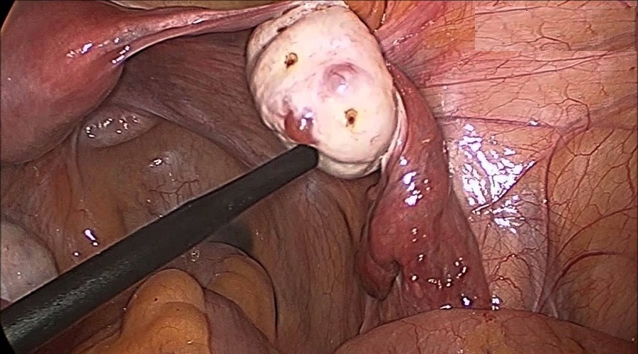 Ovarian drilling is usually done through a small incision (laparoscopy), with general anesthesia. The surgeon makes a small cut (incision) in the abdomen at the belly button. The surgeon then places a tube to inflate the abdomen with a small amount of carbon dioxide gas so that he or she can insert the viewing instrument (laparoscope) without damage to the internal organs. The surgeon looks through the laparoscope at the internal organs. Surgical instruments may be inserted through the same incision or other small incisions in the pelvic area.